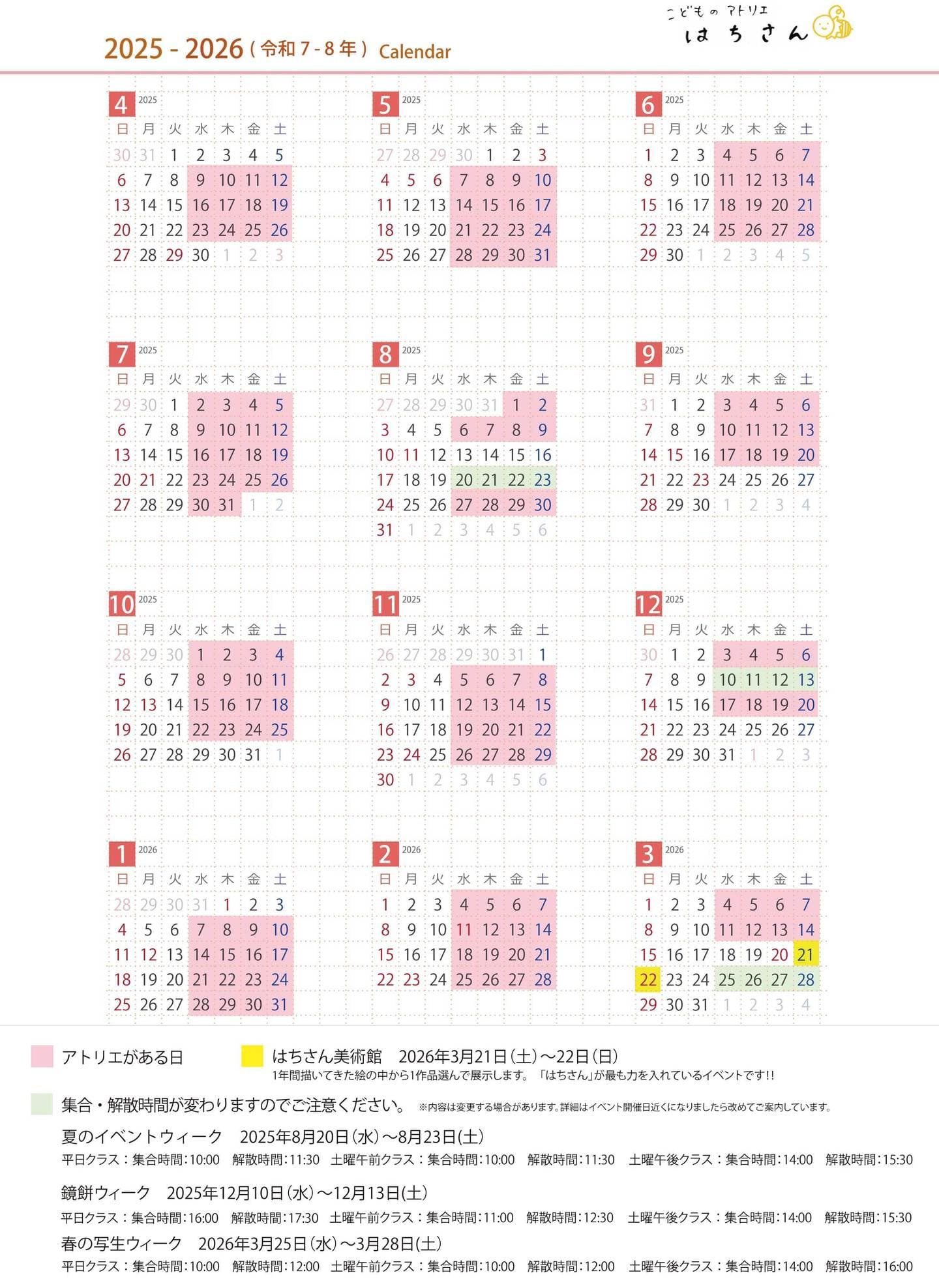 2025年度カレンダー